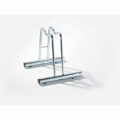 Livré à l’unité, le garage vélo à poser au sol permet de stabiliser la roue avant du vélo. Il est conçu dans une forme brevetée assez particulière qui monte moins haut sur la roue afin de pouvoir s’adapter à des vélos avec freins à disque.