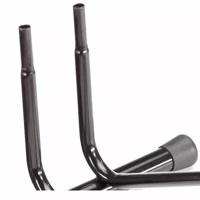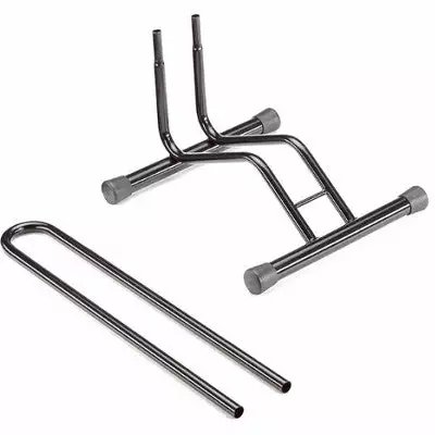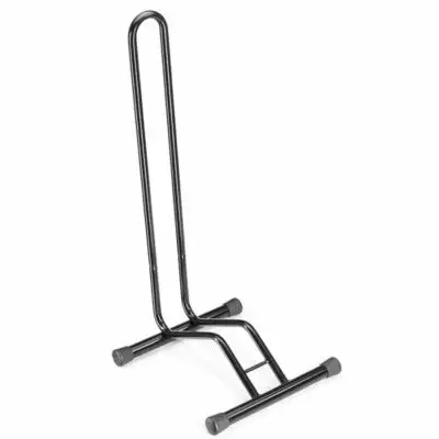 Ce support se met au sol et dispose de 4 bouchons en plastique ce qui préserve la surface du sol et évite au râtelier de glisser. Pesant 3 kilos, il a pour dimensions : 39.5 x 38 x 80.5 cm. L’espace pour accueillir la roue mesure 80 mm.