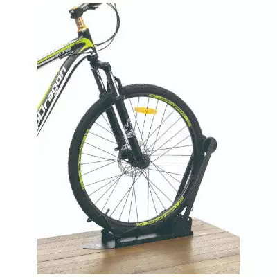 Ce parking vélo permet d’accueillir la roue avant ou la roue arrière du vélo en la poussant dans le support. La profondeur du support permet un maintien ferme et optimal du vélo. Une fois posé au sol, vous pouvez également le fixer avec des boulons (fournis) pour une accroche encore plus sure. Le support est en acier et pèse 3.14 kg, ce qui lui donne une bonne prise au sol, et est donc bien adapté aux vélos lourds. La finition épaisse de la peinture vous assure la longévité du support dans le temps.