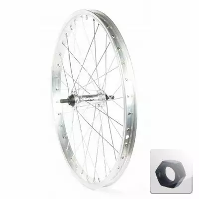 Cette roue avant argent, vous permet de changer la roue d’un vélo enfant 20 pouces et 21 mm de largeur de jante. Cette dernière est équipée d’un moyeu 28 Trous et d’un axe à boulons en acier et aluminium.
