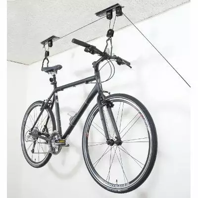 Il suffit alors de hisser le vélo d’un poids inférieur à 20 kg grâce au système de poulies démultipliant l’effort. Le vélo peut être suspendu jusqu’à une hauteur de 4 mètres au dessus du sol.