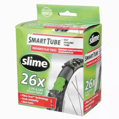 La chambre à air Slime Smart Tube dispose d’un liquide préventif contre les crevaisons. Il s’agit de la technologie Fibro Seal qui relâche un liquide vers le trou en cas de crevaison. Ce produit auto-réparant à l’intérieur de la chambre à air permet de réparer les trous dans la bande de roulement jusqu’à 3 mm.