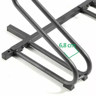 Le range vélo est composé de 3 racks disposés les uns à côté des autres. Chaque rack dispose d’un espace de 6,8 cm pour accueillir les pneus, même les plus larges.