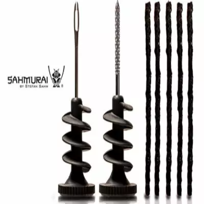 Développée par le triple vainqueur de la Cape Epic, Stefan Sahm, la marque Sahmurai a conçu le kit multi-usages Sword pour réparer des pneus tubeless. Ce set contient :