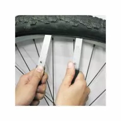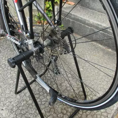 Pratique pour réparer sa bicyclette, le pied de réparation de la marque Messinschlager peut accueillir aussi bien la roue avant que la roue arrière.