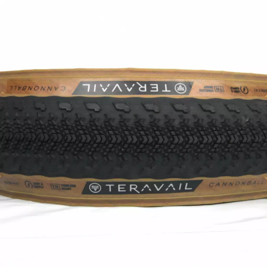 - Le Cannonball Teravail 700x38C, ETRTO (38-622) pèse 430 grammes et peut être gonflé entre 3,5 et 5,5 bar (50 et 80 psi).
