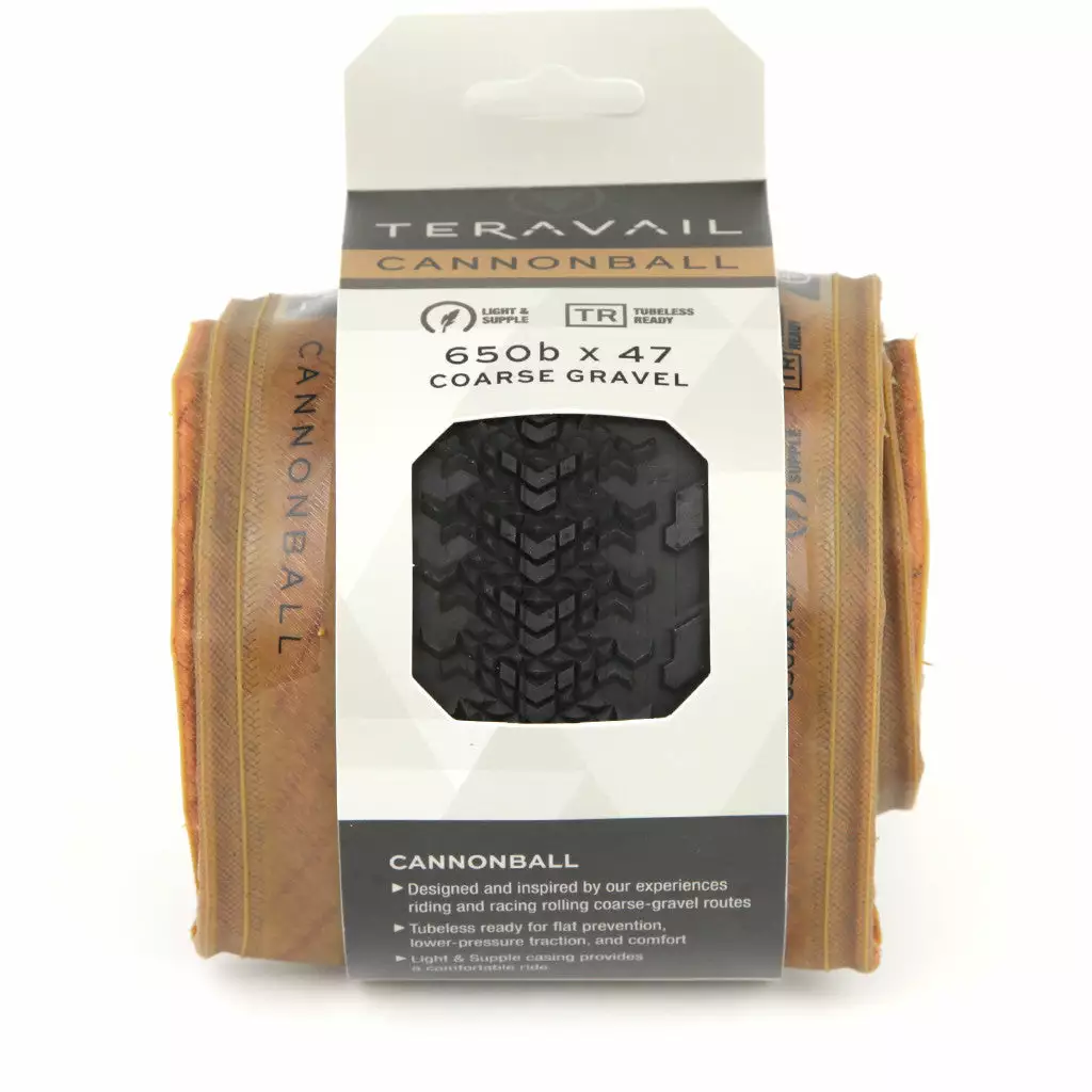 Le pneu Cannonball de Teravail est proposé en version tubeless ready, montage sans chambre à air avec liquide préventif. Il est