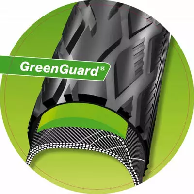 - GreenGuard : Cette sous couche élastique mesure 3 mm d’épaisseur. Cependant, le Vert n’est pas seulement sa couleur, c’est aussi sa philosophie : en effet le tiers des matériaux utilisés pour GreenGurad est recyclé. Protection anti-crevaison de 5/7 chez Schwalbe.