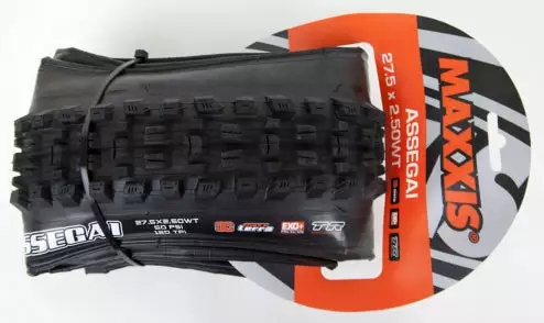Le pneu Assegai dispose de crampons agressifs inspirés par ceux du Maxxis Minion et du High Roller II. La bande de roulement est aussi largement inspirée de celle du Minion avec un mélange des caractéristiques du Minion DHF et des aspects plus roulants du DHR II. Ensuite, une rangée de crampons supplémentaires entre la bande de roulement et la rampe latérale, pour favoriser la traction lors de la prise d’angle. Les crampons latéraux proviennent, quant à eux, du High Roller II. Enfin, la hauteur de crampons est similaire à celle du Shorty. Le Assegai est un pneu enduro à la fraction des différents modèles Maxxis.