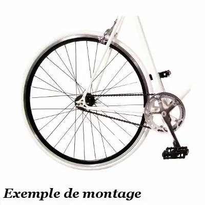 Un pignon fixe avec son contre écrou et une roue libre mono-vitesse sont fournis avec la paire de roue. Cependant, tous ces éléments de transmission ne sont pas montés. Nous vous proposons le montage en option. Pour cela, il suffit de cocher la case Montage Transmission dans les Options. (Voir plus bas).