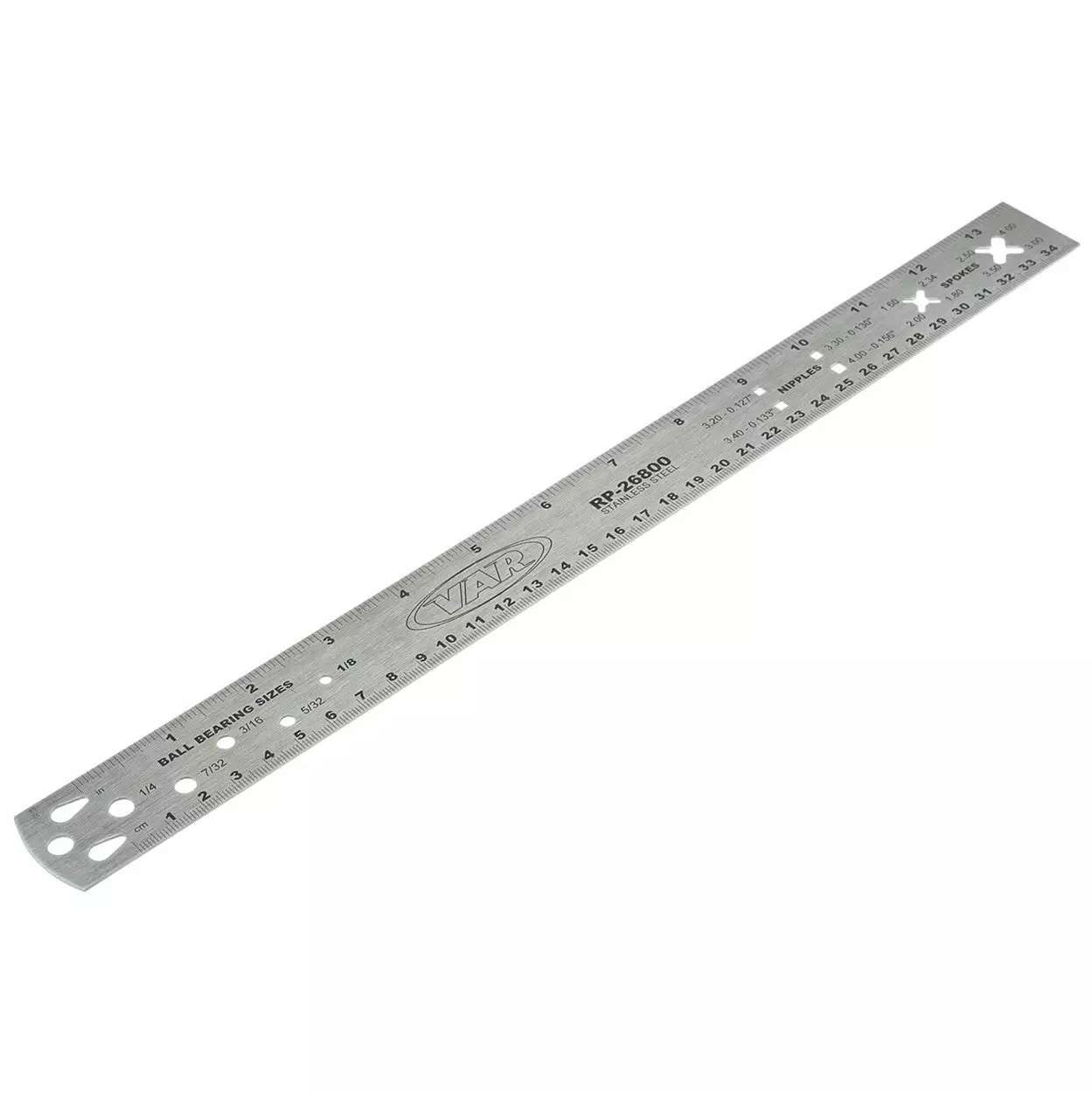 Grâce à ses calibrages intégrés, la règle Var RP-26800 mesure très rapidement le diamètre des rayons, des écrous de rayons et des billes. Vraiment pratique !