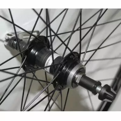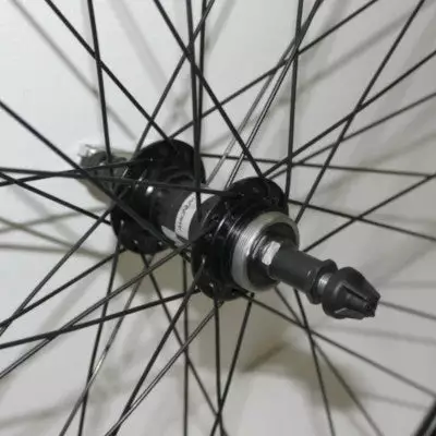 Cette roue est équipée d’un moyeu arrière pour roue libre à visser en aluminium de couleur noire, avec un entraxe de 135 mm et 36 rayons en acier inoxydable noir. Elle dispose également d’un système de serrage rapide.