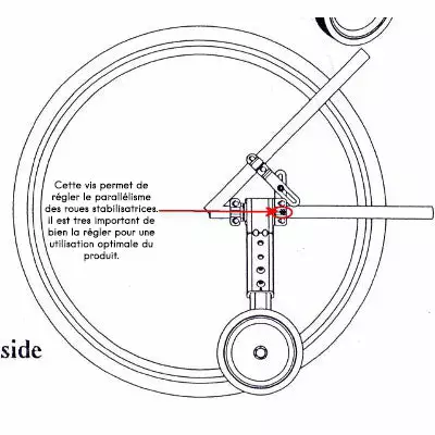 Ces stabilisateurs possèdent des pattes robustes et ajustables en hauteur pour pouvoir s’adapter sur des vélos de 22 à 28 pouces. Si le câble du dérailleur longe le tube de cadre entre la roue et le pédalier (base), il peut gêner l’installation des stabilisateurs.